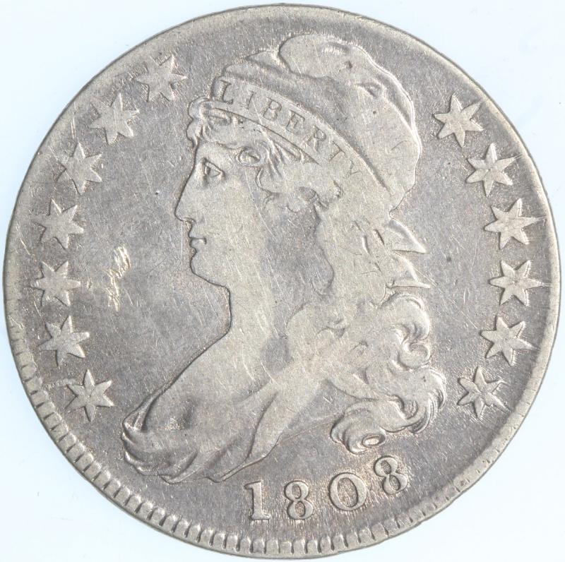 1808 O-103 Fine. This variety is identified by the missing left base of the 1 in the date. (Image)