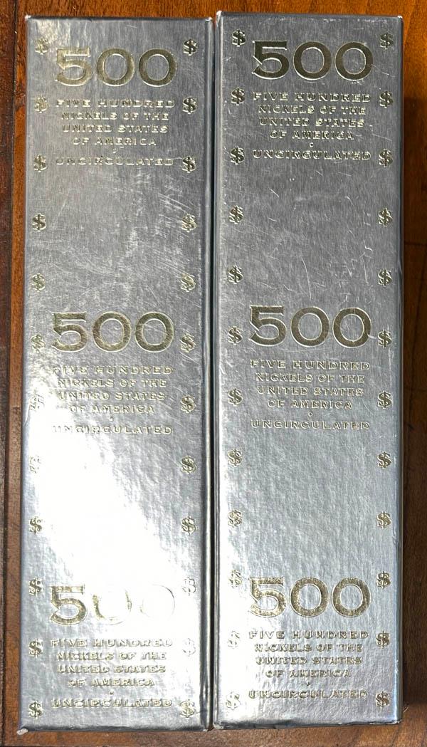 Buffalo Nickel, 2005, uncirculated bars, offered by the World Monetary Exchange in boxes made to look like silver bar; 1,000 nickels still in their original unciruculated rolls - a neat lot. Estimate $100 - 150. Suggested Bid $100-150 (Image)
