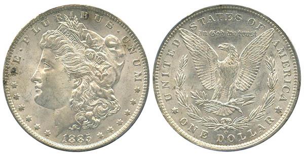 Morgan Dollar 1885-O. PCGS graded Mint State 64. Some toning on face, Red Book $115. Estimate $60 - 80. Suggested Bid $60-80 (Image)