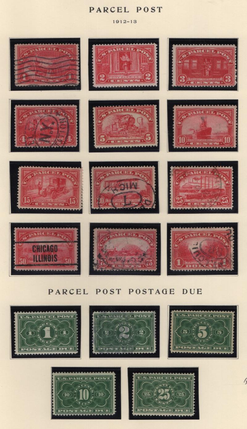 PARCEL POST & PARCEL POST POSTAGE DUES Q1-12, JQ1-JQ5 (2) cplt sets w/ mixed */O H/NH (see photo), Q7, JQ4, JQ5 are NH, other unused are hinged, unused Q2-3, 5-7, JQ1 few creases, JQ3-5, others are used, mostly F-VF (Image)
