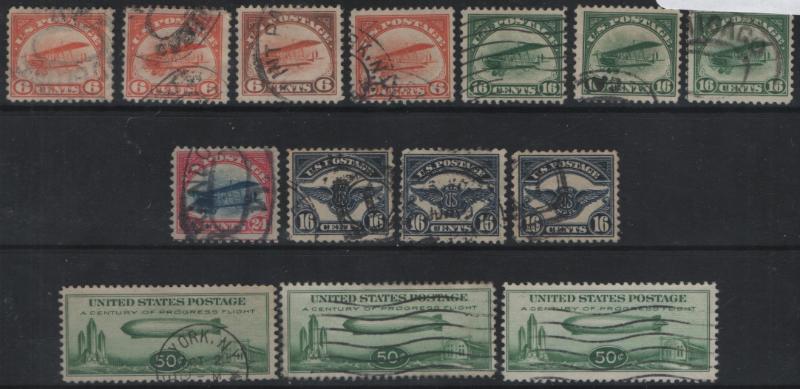 C11 Collection incl Unused: abt (250+) incl PBKs w/ single red or blue "TOP" & various pl#s incl (7) PBK/10 & (16) PBK/6, plate finishers' initials, plate scratches, open door, guide lines; Used: abt (240) incl perfins, precancels, multiples, towns, numerals etc; NH/H, could be few flts but gen F to VF+ (Image)