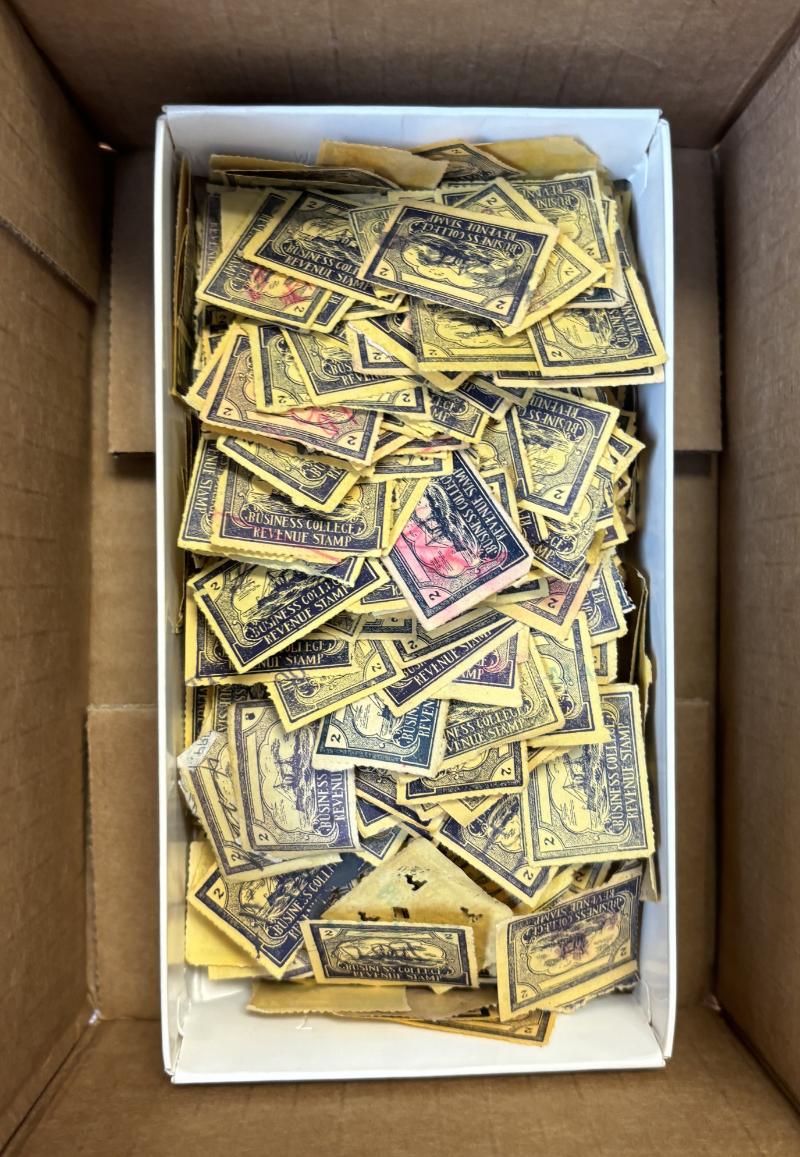 Business College Apx (400) Drummond BCR5 revenue training stamps (CV $10 ea), typical cond (Image)