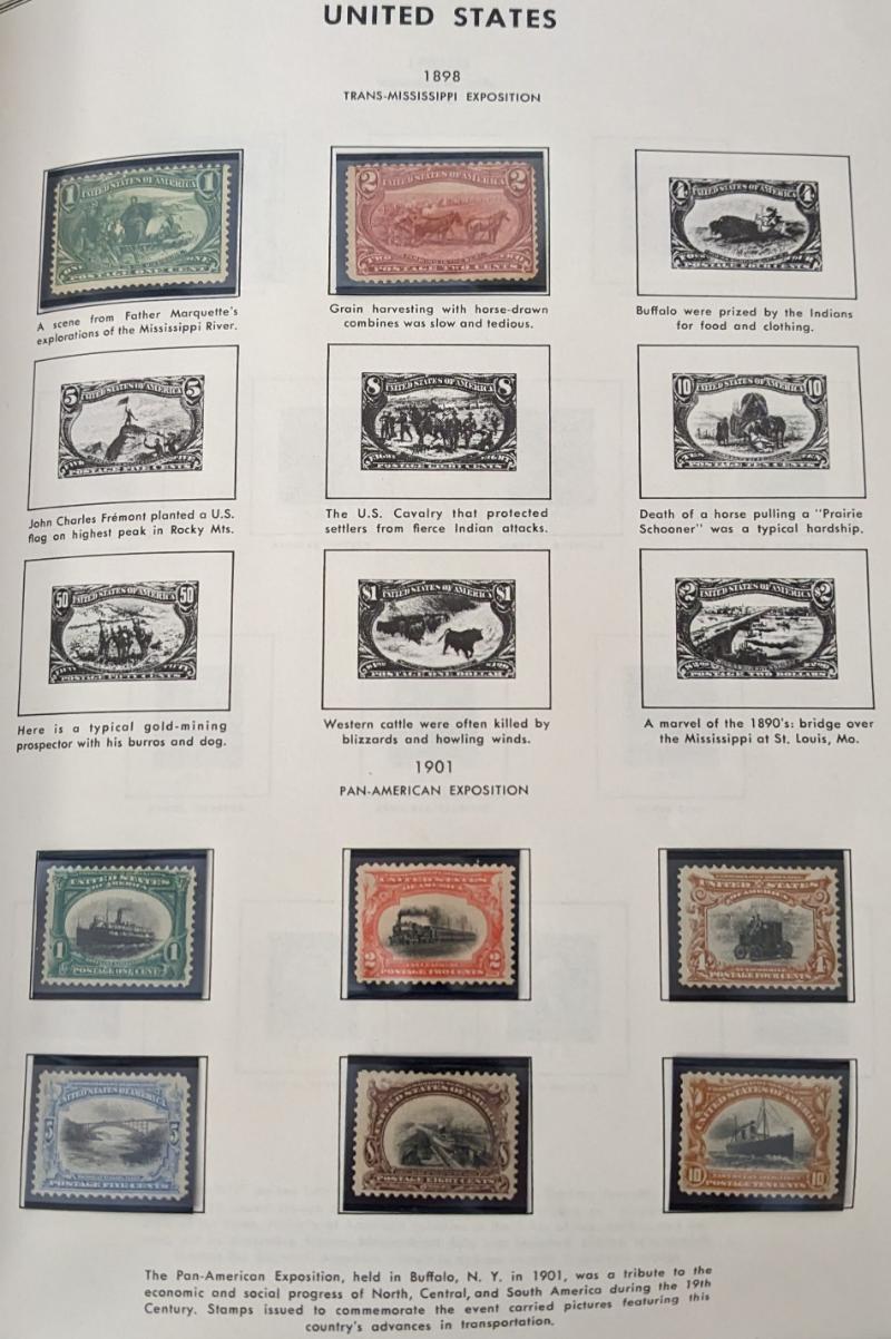 Unused Collection (100s) 1893-1987 in mounts in a Harris Liberty album incl #230-31, 235-36, 285-86, 294-95, 323-24, 334, 397-98, 568-69, 571, 600-603 line pairs, 614-23, 666, 676, 692-701, 730-31, 750-51, 803-34, 1053, C3-4, C7-12, C20-31, E11-12 highly cplt post 1934 incl some used revenues, mixed cond on earlier to later gen F-VF H/NH (Image)