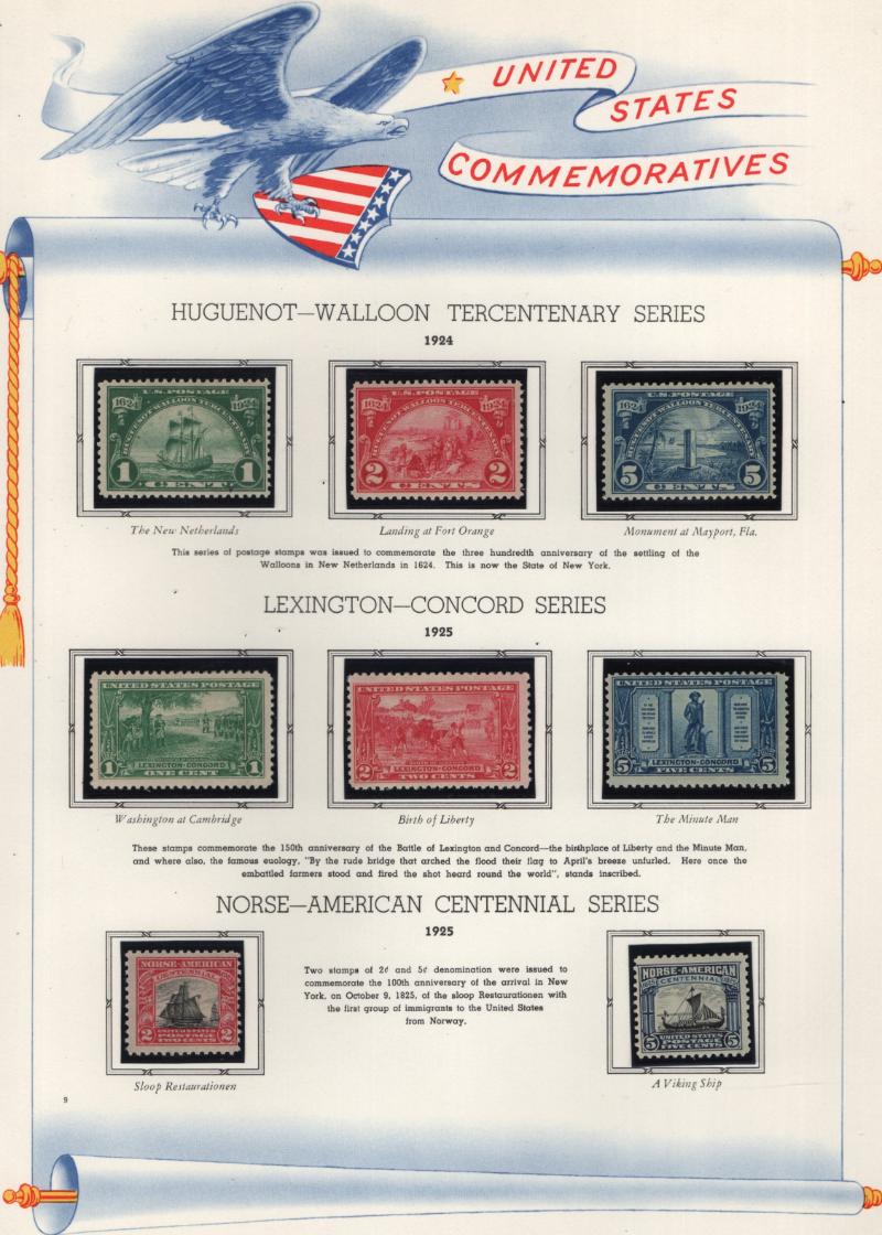 Nice Collection on W/A pgs primarily of commems unused #230-38, 285-90, 294-99, 323-27, 328-30, 397-99, 400A, 401-03, 630, nice group of Parks, PBKs of Famous Americans & overrun countries NH, most of early sgls are H to late 1920s, nice clean lot, centering varies, Avg-VF H/NH, CV $3,500+ (Image)
