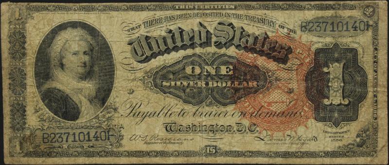 1886 $1 Silv Cert "Martha" F-217 S/N B23710140 VG worn but no major problems. (Image)
