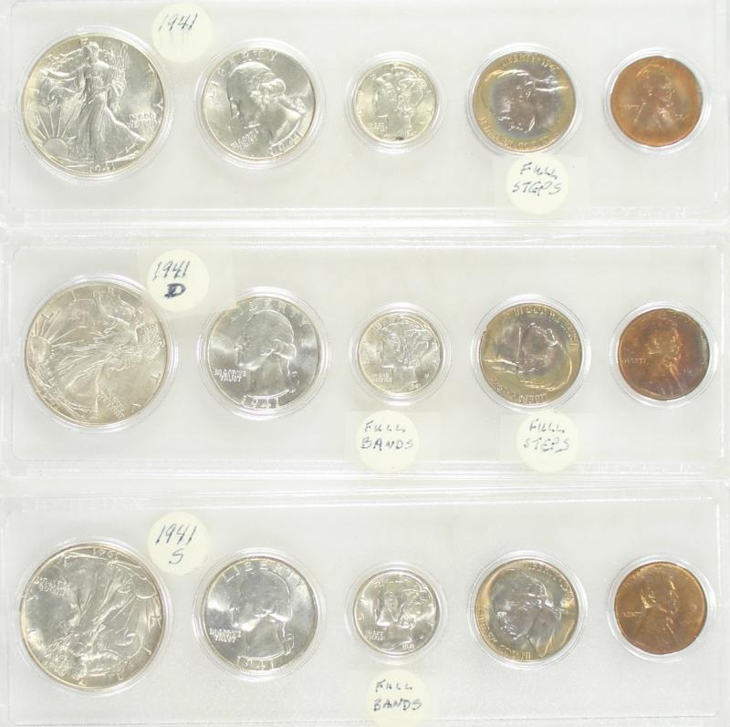 1941 Put-together set of all denominations and mints for the (15) coins making up a single mint set for 1941. All the coins are MS60 to MS63. Combined Greysheet value approx. $330. (Image)