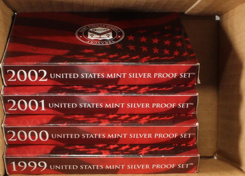 (4) Silver Proof Sets in a straight run 1999 // 2002 all in OGP. (Image)