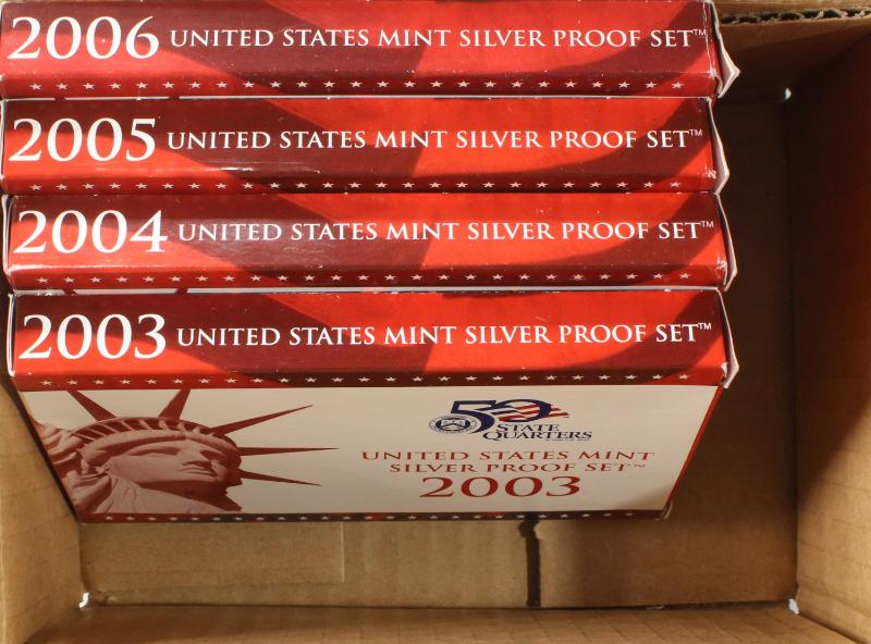 (4) Silver Proof Sets in a straight run 2003 // 2006 all in OGP. (Image)