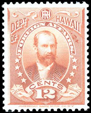 Hawaii, Official, 1896, 12¢ orange (Scott O5), o.g., never hinged, Very Fine. Scott $110. Estimate $75 - 100. Scott $110 Suggested Bid $75-100 (Image)