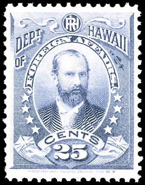 Hawaii, Official, 1896, 25¢ gray violet (Scott O6), o.g., never hinged, Very Fine. Scott $130. Estimate $75 - 100. Scott $130 Suggested Bid $75-100 (Image)