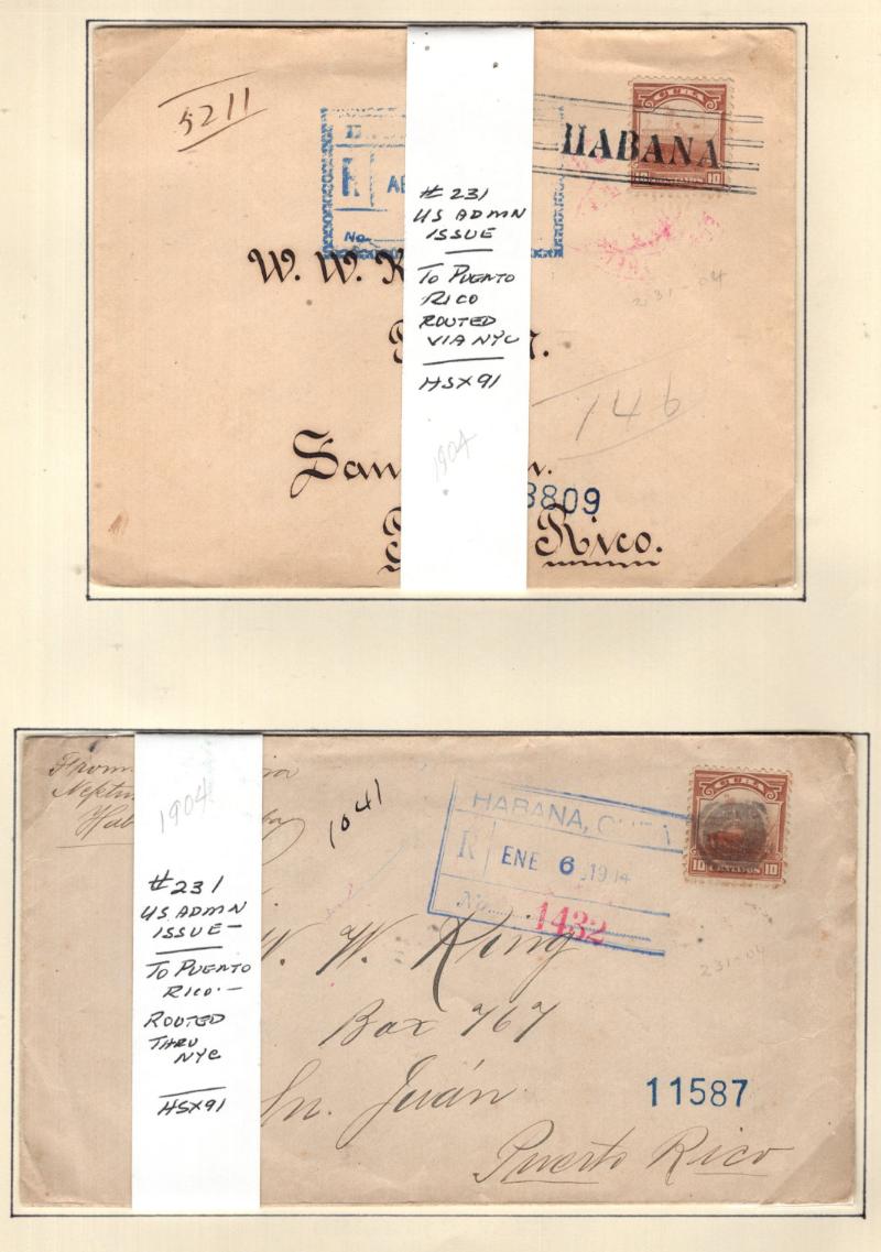 Collection Stamps & cvrs in an album incl Unused: #210 Blk, 212-14, J1-3, RE36 & Used: R4, RE4-5, RE10, RE26-32, RE42-49, RE51 & entires for U1, U3-4, U14, UX1, UX2, UX3 (2) & Used: U14 U17, UX2 as well as Spanish admin postal stationery, later flight cvrs, airmail rates & other Puerto Rico related, gen F-VF H (Image)