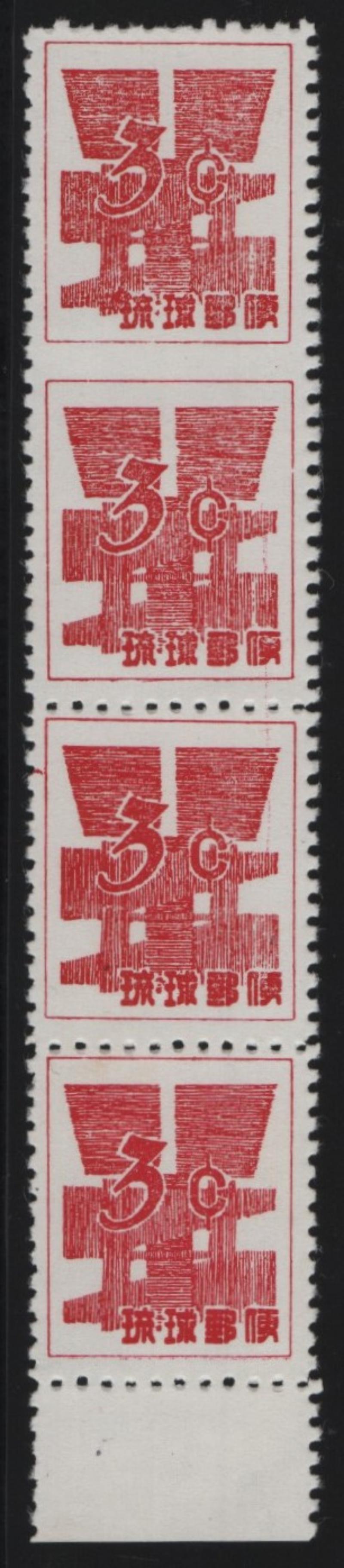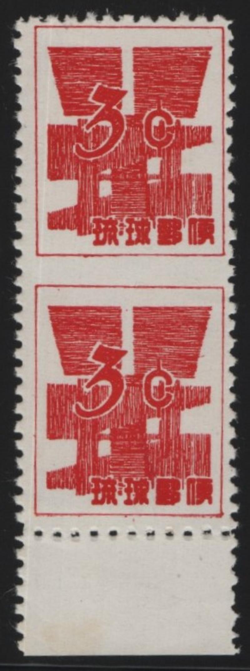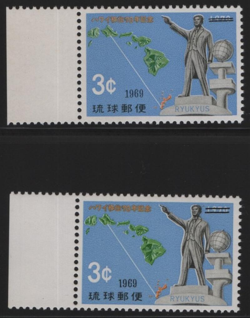 192a VF Ryukyu-Hawaii Emigration 3¢ multi, Ovpt omitted error, fewer than (40) known (Image)