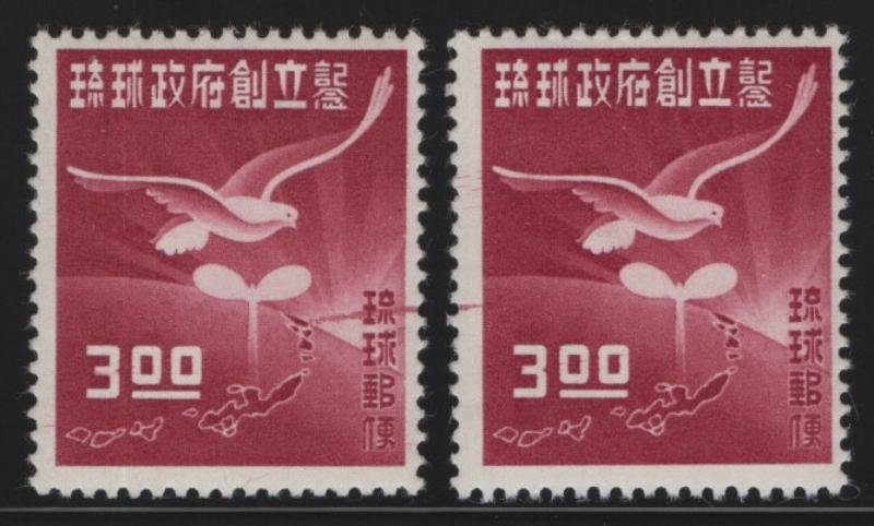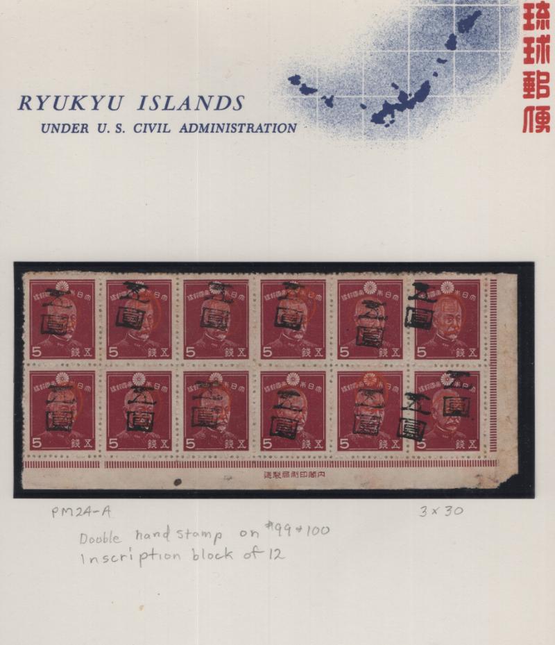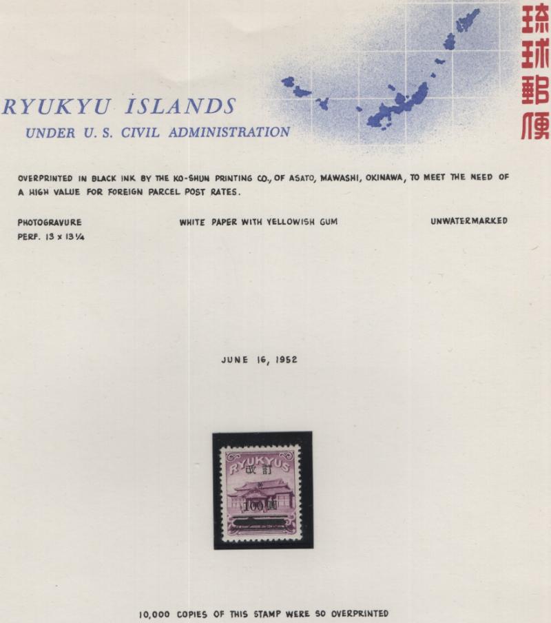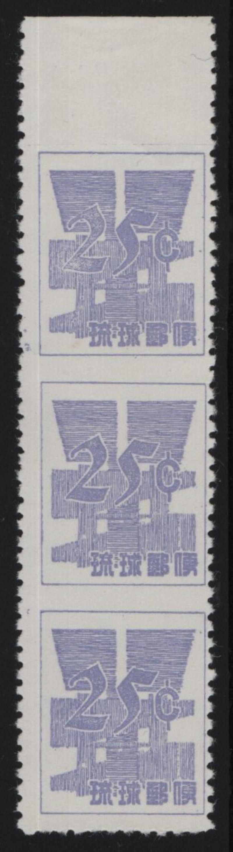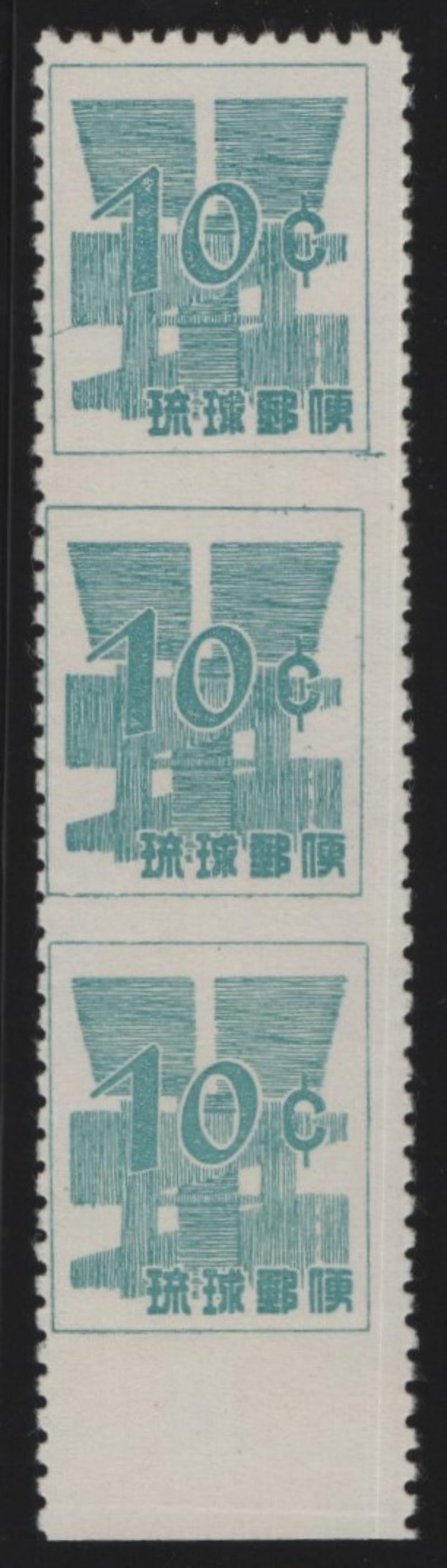 192a VF Ryukyu-Hawaii Emigration 3¢ multi, Ovpt omitted error, fewer than (40) known (Image)