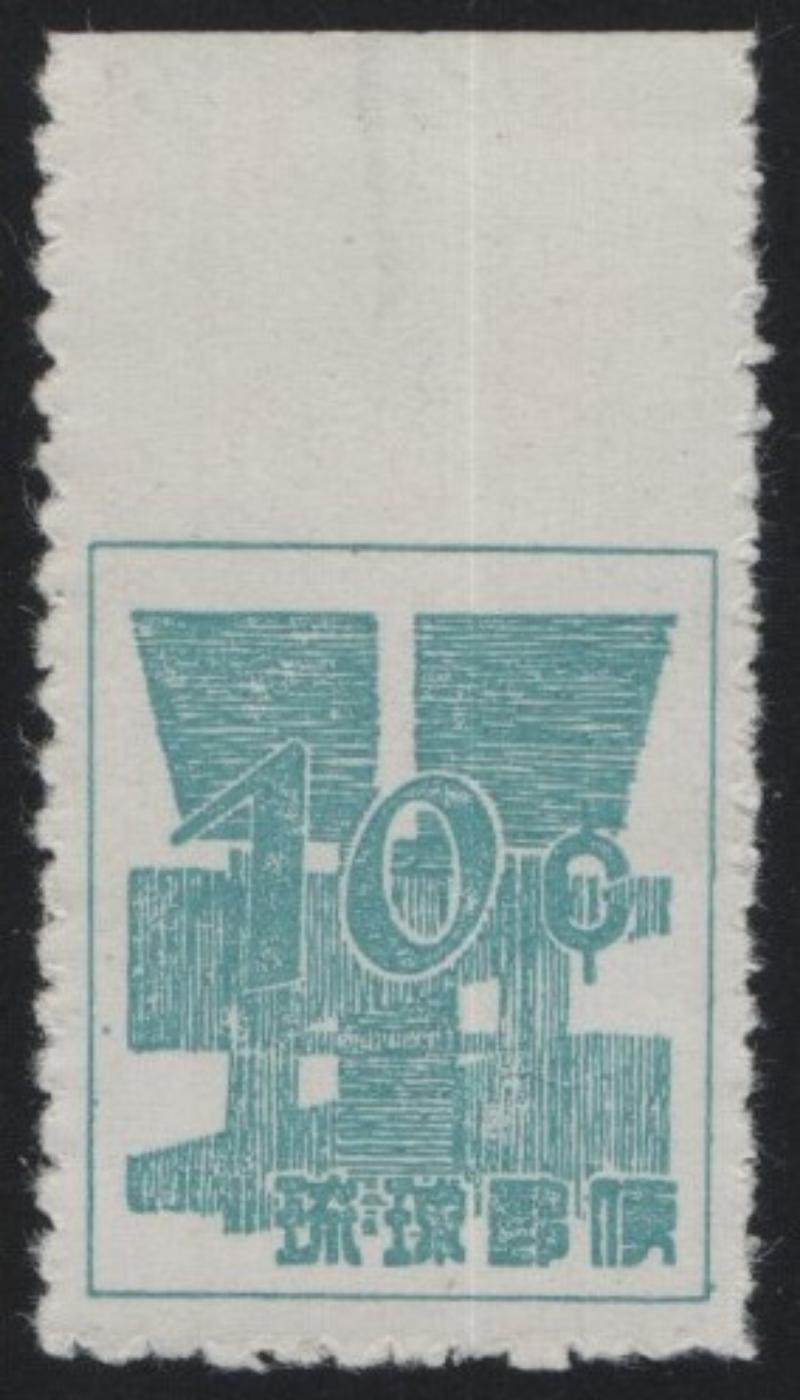 C19d F-VF+ Surcharged 9¢ on ¥4, legend of surcharge only error ("9¢" omitted); this error from the top row of the one known sheet of (100) w/ shifted surcharges (Image)
