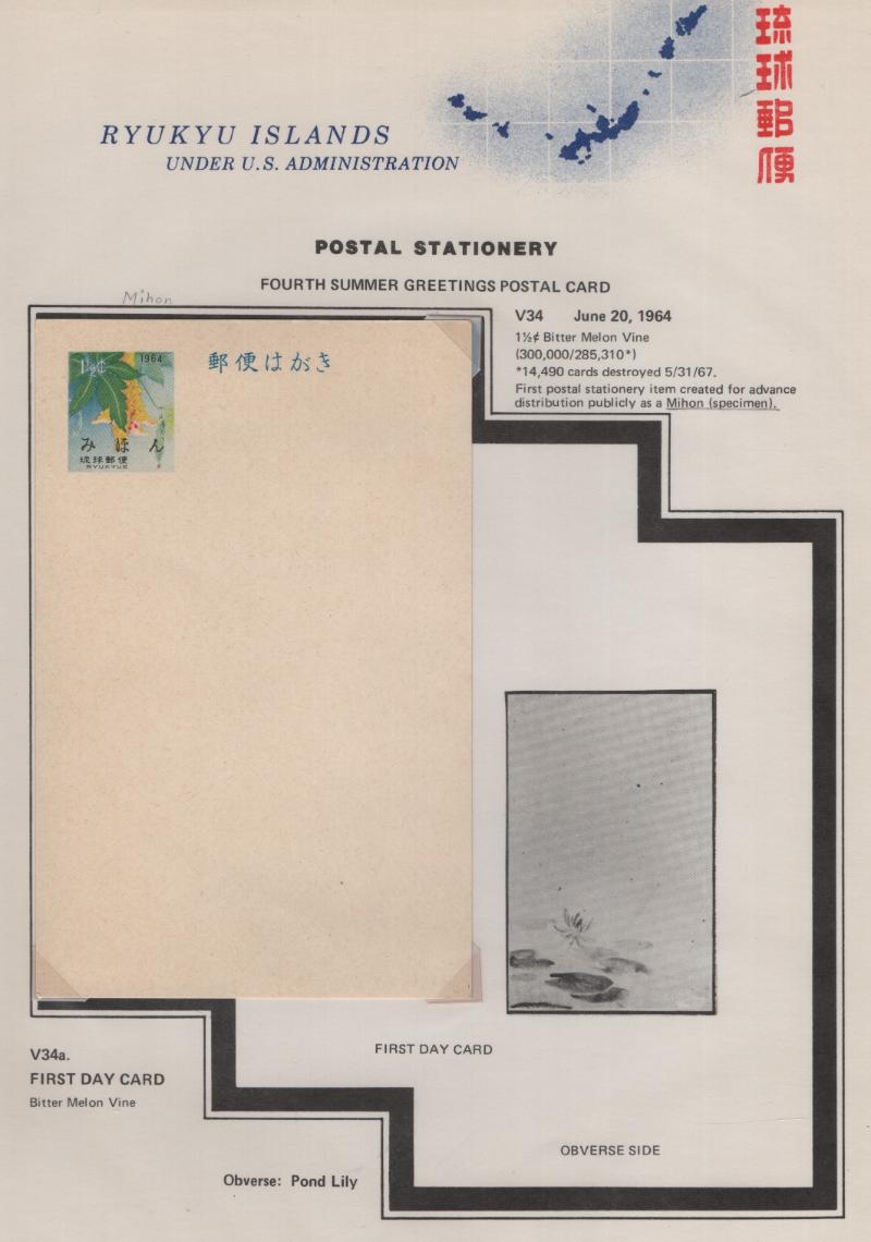 Complete set of (4) official Mihons on 1964-65 postal cards, UX26S-29S, ea mounted on Bush album page, VF (Image)
