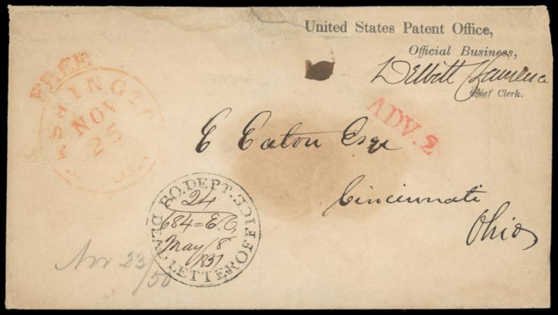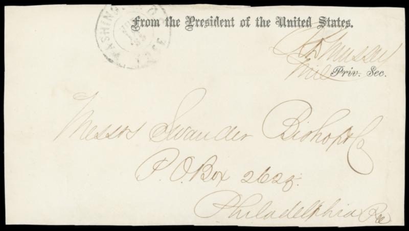 Mail from this correspondence as per the content was sent via diplomatic pouch through the State Department in Washington D.C. Robert S. Chew was a career officer at the Dept. of State entering service as a junior Clerk in the 1830s and died in office as Chief Clerk in 1873. US$1,500-2,000 (Image)