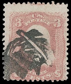 "U.S." in Frame. Bold strike cancels 3¢ rose (65), trivial corner perf crease, an Extremely Fine strike. Skinner-Eno No. PT-C 23; Estimate $200 - 300. US$200-300 (Image)