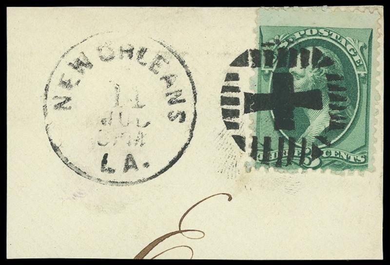 (New Orleans La.) Cross within Geometric. Clear strike on 1¢ blue (156), well centered, Very Fine. Cole No. GEN-76; Estimate $150 - 200. US$150-200 (Image)