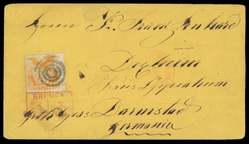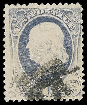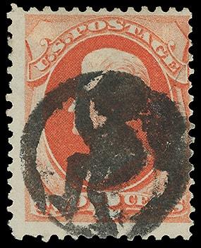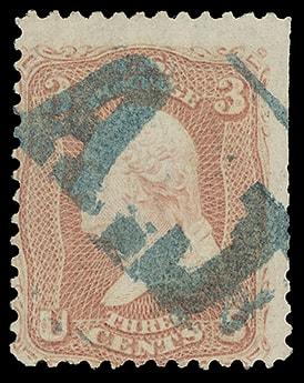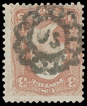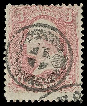 The creation and use of this fancy cancel in the Spring of 1866 coincided with the return of soldiers from the Civil War. US$500-750 (Image)