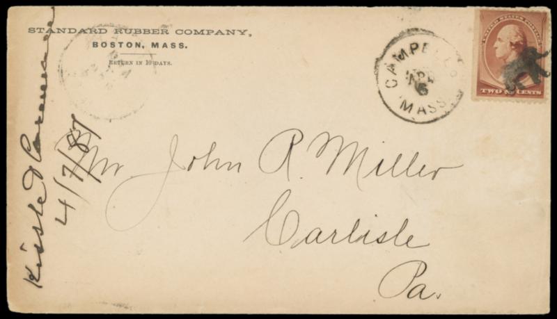 A CHOICE AND RARE USE OF THE SAINT CLAIR, MICHIGAN "SHOO-FLY" CANCEL. US$400-600 (Image)