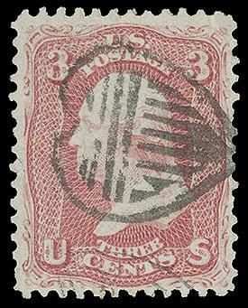 "US" in Wreath of Stars. Of Albany N.Y., neat strike cancels 3¢ rose (65), small thin spot, a Very Fine strike. Skinner-Eno No. PT-C 17; Estimate $150 - 200. US$150-200 (Image)