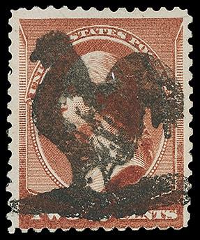 Rooster. Perfect bold strike on 2¢ red brown (210), strong color, reperfed at top, still an Extremely Fine strike of this rare pictorial fancy cancel. Cole No. Bi-33; Estimate $200 - 300. US$200-300 (Image)