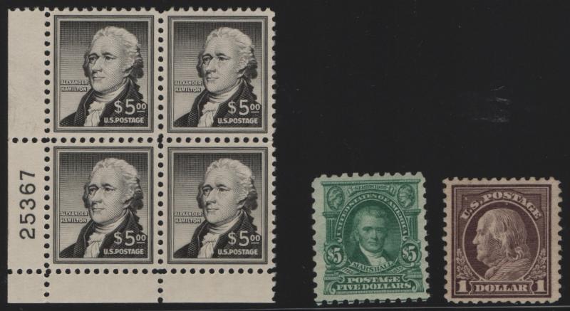 480, 518, 1053 (3) Dollar level stamps: #480 F-VF H; #518 F-VF RG; #1053 LL PBK NH (Image)