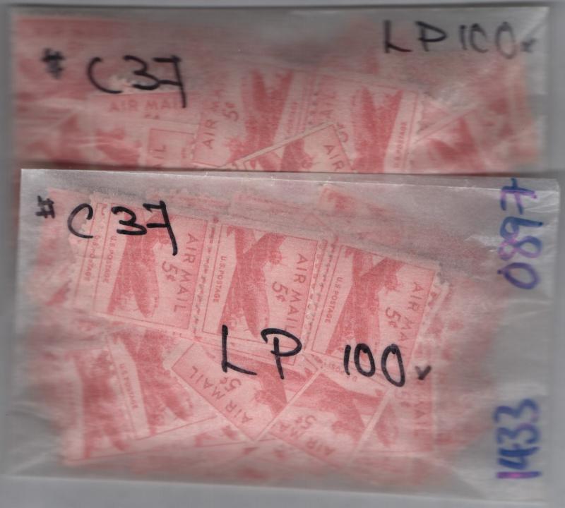 C37 (200) F-VF to VF NH, Line Pairs (200), 5¢ carmine DC-4 (Image)