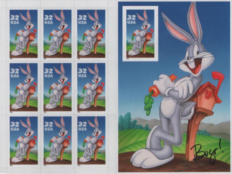 Group (6) unused incl (3) #2870 Recalled Legends sheets/20 (2 w/ blue env), (1) #3138 Bugs Bunny imperf sheet/10, C18 NH VF, C18 H F-VF (Image)