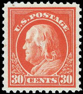 1917, 30¢ Franklin, orange red, perf. 11 (Scott 516), o.g., never hinged, Extremely Fine, with 2021 P.S.E. certificate graded XF 90. Scott $70. SMQ $140. Estimate $100 - 150. Scott $70 Suggested Bid $100-150 (Image)