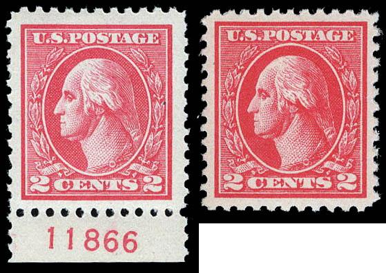 1918, 2¢ Washington, type Va, carmine, and 2¢ Washington, type VII, carmine, offset printing (Scott 528, 528B), o.g., never hinged, Extremely Fine, with 2008-13 P.S.E. certificates graded XF 90. Scott $73. SMQ $190. Estimate $100 - 150. Scott $73 Suggested Bid $100-150 (Image)