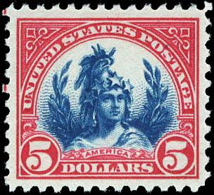1923, $5 America (Scott 573), o.g., never hinged, Extremely Fine, with 2019 P.S.E. certificate graded XF 90. Scott $180. SMQ $250. Estimate $150 - 200. Scott $180 Suggested Bid $150-200 (Image)