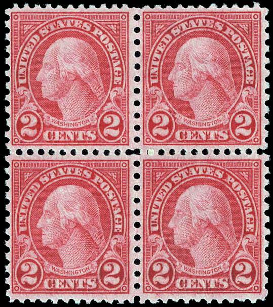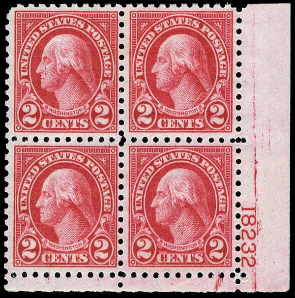 1924, 2¢ Washington, rotary press printing, perf. 10 (Scott 583), plate block of 4, o.g., never hinged, Fine to Very Fine. Scott $110. Estimate $40 - 60. Scott $110 Suggested Bid $40-60 (Image)