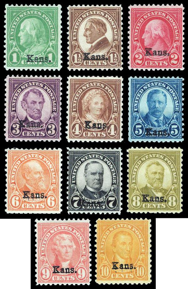 1929, Kans., 1¢ to 10¢ and Nebr., 1¢ to 10¢ both complete (Scott 658-668, 669-679), two sets of 11, o.g., hinged, Fine to Very Fine. Scott $476. Estimate $100 - 150. Scott $476 Suggested Bid $100-150 (Image)