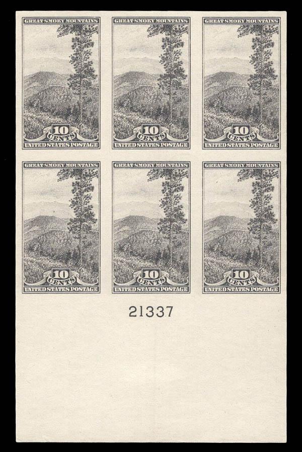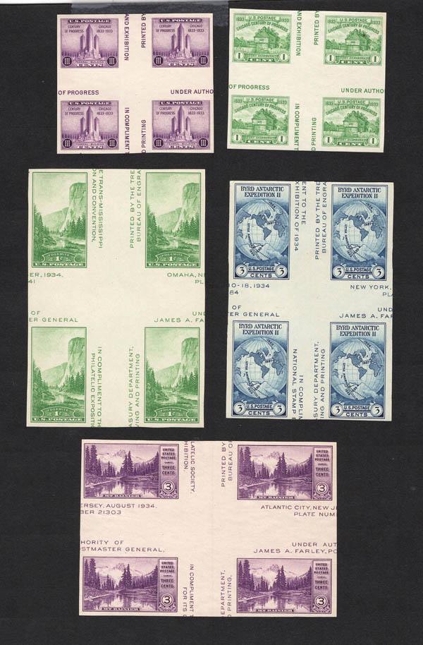 1934-35, a group of Farley imperf plate blocks (Scott 754-764, 771), without gum as issued; 2¢ Parks with a light wrinkle, otherwise Very Fine. Scott $335. Estimate $75 - 100. Scott $335 Suggested Bid $75-100 (Image)