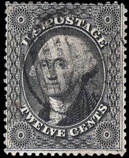1857, 12¢ Washington, black, plate I (Scott 36), lightly struck grid cancel, Fine. Scott $325. Estimate $60 - 80. Scott $325 Suggested Bid $60-80 (Image)