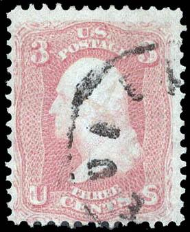 1861, 3¢ Washington, rose pink (Scott 64b), fresh true color, town postmark, Fine, with 2025 P.F. certificate. Scott $160. Estimate $40 - 60. Scott $160 Suggested Bid $40-60 (Image)