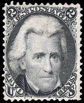 1863, 2¢ Jackson, black (Scott 73), bright fresh paper, unused without gum, Fine to Very Fine. Scott $150. Estimate $50 - 75. Scott $150 Suggested Bid $50-75 (Image)