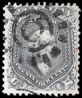 1863, 24¢ Washington, lilac (Scott 78), neat San Francisco cog and partial red foreign mail cancels, Fine. Scott $400. Estimate $100 - 150. Scott $400 Suggested Bid $100-150 (Image)
