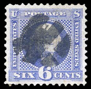 1869, 6¢ Washington, ultramarine (Scott 115), lovely centering, Very Fine. Scott $225. Estimate $120 - 180. Scott $225 Suggested Bid $120-180 (Image)