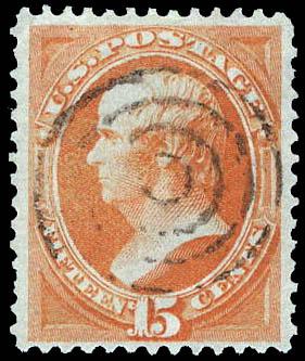 1870, 15¢ Webster, bright orange, without grill, N.B.N.C. printing (Scott 152), outstandingly well centered, with a neat socked-on-the-nose target cancel, Extremely Fine, with 2001 P.F. certificate. Scott $225. Estimate $150 - 200. Scott $225 Suggested Bid $150-200 (Image)