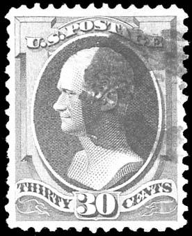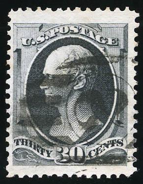 1873, 30¢ Hamilton, gray black, C.B.N.C. printing (Scott 165), nicely centered within enormous jumbo margins, lightly canceled, almost Very Fine. Scott $150. Estimate $80 - 120. Scott $150 Suggested Bid $80-120 (Image)
