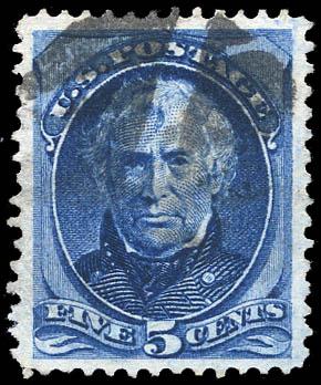 1875, 5¢ Taylor, blue, C.B.N.C. printing (Scott 179), excellent centering and a fairly light cancel, Extremely Fine, with 2007 P.S.E. certificate graded XF 90. Scott $28. SMQ $95. Estimate $75 - 100. Scott $28 Suggested Bid $75-100 (Image)
