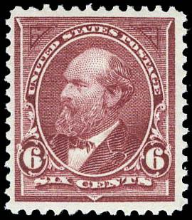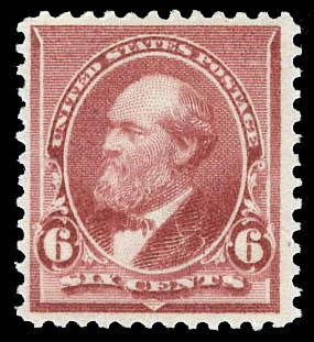 1895, 6¢ Garfield, claret brown, D.L. watermark (Scott 271 var.), warm rich color, o.g., never hinged, Very Fine, with 2000 P.S.E. certificate as "dull brown". Scott $325. Estimate $150 - 200. Scott $325 Suggested Bid $150-200 (Image)