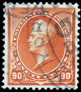 1869, 90¢ Lincoln, carmine & black (Scott 122), a beautiful example of this high value, exceptionally well centered, with bright fresh color, black cork cancel, Very Fine to Extremely Fine, with 2023 P.S.A.G. certificate graded VF-XF 85. Scott $2,100. SMQ $3,250. Estimate $1,500 - 2,000. Scott $2,100 Suggested Bid $1,500-2,000 (Image)