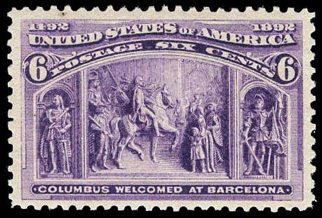 1893, 10¢ Columbian (Scott 237), immaculate o.g., never hinged, Fine to Very Fine. Scott $265. Estimate $75 - 100. Scott $265 Suggested Bid $75-100 (Image)