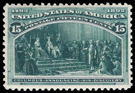 1893, 15¢ Columbian (Scott 238), o.g., never hinged, Very Fine, with 2020 P.S.A.G. certificate. Scott $700. Estimate $300 - 400. Scott $700 Suggested Bid $300-400 (Image)