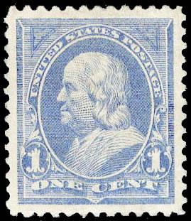 1894, 1¢ Franklin, ultramarine, unwatermarked (Scott 246), o.g., hinged, Extremely Fine to Superb, with 2018 P.S.E. certificate graded XF-SUP 95J. Scott $30. SMQ $165. Estimate $100 - 150. Scott $30 Suggested Bid $100-150 (Image)