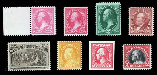 1873-1920, an interesting balance lot of 8 attractive stamps (Scott 158//547), including Scott #158 (H), 224 (n.h. with PFC), 237 (n.h.), 248 (disturbed o.g.), 250 (n.h.), 416 (n.h.), 533 (l.h.) and 547 (n.h.), Fine to Very Fine. Scott $1,138. Estimate $350 - 500. Scott $1,138 Suggested Bid $350-500 (Image)