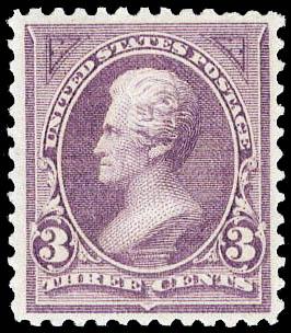 1894, 3¢ Jackson, purple, unwatermarked (Scott 253), exceptionally well centered, o.g., lightly hinged, Very Fine to Extremely Fine, ex-Zoellner, with 2025 P.F. certificate. Scott $120. Estimate $100 - 150. Scott $120 Suggested Bid $100-150 (Image)